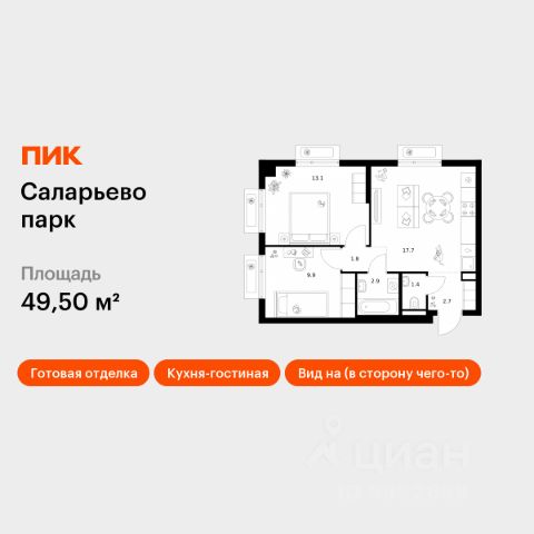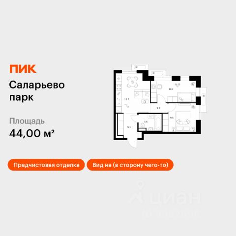 Продаётся 2-комн. квартира площадью 46,2 кв.м на 10 этаже 15 этажного дома (Корпус 57.2, Секция 2) проекта ПИК Саларьево парк. Светлый просторный подъезд на уровне земли, функциональная планировка, большие окна, предчистовая отделка. Жилой район "Саларьево парк" расположен в Новой Москве, в четырёх километрах от МКАД по Киевскому шоссе. Две станции метро: "Саларьево" и "Филатов луг", — находятся в пешей доступности от проекта. Дойти до них можно за 510 минут. В квартале уже создана качественная среда, где есть абсолютно всё для полноценной жизни, работы и отдыха. Благодаря удобному расположению проекта всё важное будет рядом: детские сады, школы, кафе и рестораны, шопинг в торговых центрах, фитнес и даже аэропорт. Все корпуса в квартале гармонично сочетаются, образуя единую городскую среду. Между собой их объединяет невысокая этажность и натуральная цветовая гамма. Здесь приятно гулять и проводить время на улице всей семьёй. В "Саларьево парке" создана уникальная образовательная среда, включающая в себя шесть школ, рассчитанных на 6 250 учеников. Две из них уже открыты, их посещает 2 300 детей. Также на территории "Саларьево парка" находится 12 детских садов, один из которых с бассейном. Сейчас уже открыты 7 садов. В "Саларьево парке" открыта уникальная игровая площадка — PlayHub "Оригами". Здесь есть ручей, горка-труба и рельефные холмы. Взрослые смогут отдохнуть в уютном кафе, пока дети играют. Также на территории проекта есть SportHub — большая спортивная зона, разделённая по интересам и возрастам. Здесь можно заниматься разными видами спорта: футболом, баскетболом, волейболом и стритболом. Зимой центральную часть площадки превращают в каток. Во дворах-парках жилого квартала есть места для отдыха, детские и спортивные площадки. На первых этажах домов расположены магазины, кафе и полезные сервисы. Также вблизи проекта есть несколько масштабных торговых центров. До ТЦ "Саларис" пять минут пешком, до "Рио", Metro Cash & Carry и "Леруа Мерлен" — пять минут на автомобиле. Артикул 1019178 (Застройщик ООО "Специализированный Застройщик "Тирон")