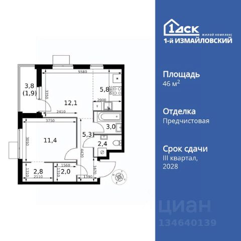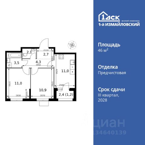 Прямая продажа от застройщика! Жилой Комплекс Комфорт класса. Продаётся 2-к квартира номер 63 общей площадью 46.9 кв.м. на 10-м этаже 24 этажного дома. Отделка Whitebox. Цена с учётом скидки! Особенности квартиры: - Угловая планировка - больше пространства для ваших идей. - Увеличенное количество окон - дополнительное освещение и свежий воздух. - Ниша под стиральную машину - удобство и экономия пространства. - Раздельный санузел - больше удобства для всех членов семьи. - Евроформат - просторное и удобное жилье с отличной планировкой. - Гибкая планировка - создайте пространство по своему вкусу. - Возможность добавить спальное место - дополнительный комфорт для гостей. - Ниша под шкаф - компактное и удобное место для вещей. - Просторная лоджия - идеальное место для уютных вечеров. - Панорамное остекление лоджии - открывает вид на окружающий мир. Квартира с предчистовой отделкой (White box). Вам не придется заниматься черновыми и трудоёмкими работы, а чистовую отделку и дизайн - сделайте на свой вкус. Информация о комплексе: Современный архитектурный проект "1-й Измайловский" - идеальное место для проживания, расположенное в восточной части Москвы в окружении 14 000 гектаров леса. Комплекс пронизан атмосферой здорового образа жизни и благополучия. Сиреневый сад и близлежащие лесопарки - это места, где можно насладиться лыжными прогулками зимой и тонизирующими пробежками летом. Расположенный между Щелковским шоссе и Амурской улицей, "1-й Измайловский" осмысляет себя не столько через близость к городским точкам притяжения, сколько через соседство с зелеными пространствами и спортивными объектами. Он отгорожен от шоссе застройкой первой линии и собственными садами здоровья. В его окнах - изумрудное море парка "Лосиный остров" и густые кроны окрестных дворов. В его графике - занятия спортом и прогулки в Измайлове. Транспортная доступность: Не более 2,5 км до станций метро "Щёлковская" и "Черкизовская" и МЦК "Локомотив". Щёлковское шоссе соединяет квартал с Северо-восточной хордой и МКАД, Центральным автовокзалом и Восточным железнодорожным вокзалом. Две автобусные остановки в паре минут ходьбы и 11 маршрутов общественного транспорта. На автомобиле 3 минуты до СВХ 12 минут до ТТК 15 минут до Садового кольца Внутренняя инфраструктура: Комплекс находится в исторически сложившемся районе Москвы с хорошим качеством и плотностью инфраструктуры. Торговые центры и сетевые магазины -6 детских садов, включая собственный детский сад на 125 мест -3 школы, включая собственную школу -Поликлиники и медицинские центры -Парки и зоны отдыха Расположение архитектурного проекта создает все условия для тех, кто стремится к здоровому образу жизни и для тех, кто уже сделал выбор в его пользу. В ближайшем окружении расположены несколько стадионов и множество спортивных объектов для занятий спортом на любой вкус: от всеми любимого футбола, баскетбола и до конного спорта. В окружении проекта более 30 километров организованных бег