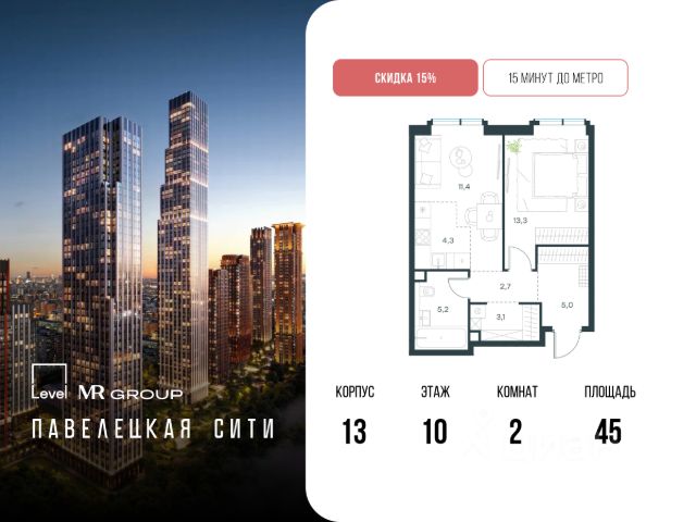 Продается 2-к квартира общей площадью 77.00 кв.м на 10 этаже премиум-жилого комплекса "Дом 7 Даниловский". Ваши выгоды • 6% скидка на квартиры при полной оплате и базовой ипотеке • Беспроцентная рассрочка до 18 месяцев с оплатой 30% и до 70% по мере готовности • При покупке квартиры с 2+ спальнями или с террасами — машино-место в подарок • Срок сдачи объекта: 2 квартал 2027 года Почему стоит выбрать "Дом 7 Даниловский" • Расположение: тихий уголок старой Москвы на улице Серпуховский Вал, в окружении спокойствия и зелени, в шаговой близости к центру города; • Архитектура: фасады и планировочные решения от известного бюро "Остоженка"; варианты — от предчистовой white box до дизайнерской чистовой отделки, а также 5 стильных видовых пентхаусов с террасами; • Инфраструктура на первых этажах: фитнес-зал, камерный ресторан, детские площадки, коворкинг и переговорные, лаунж-зоны; • Внутренний двор и паркинг: 1 га ландшафтного парка от GAFA, спортивные зоны, место для медитации и спокойного отдыха • Удобство для жителей: подземный паркинг на 137 машино-мест и кладовые, система распознавания номеров на въезде и выезде; О проекте "Дом 7 Даниловский" — это жизнь премиум-класса, где каждый день наполнен комфортом, уютом и статусом. Здесь гармонично сочетаются престижный формат жилья, продуманная инфраструктура и уникальная локация в сердце столицы