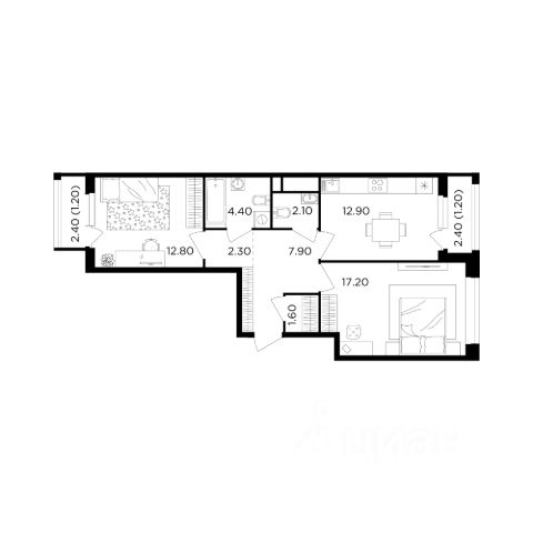 Продается двухкомнатная квартира без отделки в 9 фазе города-парка "Первый Московский". Общая площадь квартиры - 61,3 кв. м, этаж 10 из 19. Срок сдачи - 2 квартал 2027 года. Тип дома - монолитный. Цена указана при 100% оплате. Новый корпус состоит из 3 секций: Все квартиры с отделкой White Box с возможностью дополнительного выбора дизайнерской отделки: Classic или Smart+ Город-парк "Первый Московский" расположен всего в 7 км по Киевскому шоссе (Новая Москва). Из города-парка прямой выезд на Киевское шоссе и трассу Солнцево-Бутово-Варшавское шоссе. ТРАНСПОРТНАЯ ДОСТУПНОСТЬ: - 5 мин. на личном автомобиле или 10 мин. на автобусе 189, 147, 193 до станции метро "Филатов Луг" - 5 мин. на личном автомобиле или 12 мин. на автобусе 863 до станции метро "Саларьево" - 6 мин. на личном автомобиле или 15 мин. на автобусе 333 до станции метро "Рассказовка" РАЗВИТАЯ ИНФРАСТРУКТУРА В ОКРУЖЕНИИ: - общеобразовательная школа 2120 (корпуса д1, д7, ш1-ш5) - детский сад 2120 (корпуса д2, д9) - школа искусств - городская больница, детская поликлиника, филиал 5 - подстанция скорой помощи 58 и пожарно-спасательный центр 313 - отдел полиции, отдел ГИБДД - торговые центры "Столица" и "Новомосковский" - стадион, каток, бассейн - кафе, продуктовые магазины, аптеки, фитнес-центры, салоны красоты и пр. БЛАГОУСТРОЙСТВО: - дворы без машин - разнообразные детские площадки и развивающие комплексы - детские площадки разделены по возрастным группам - максимальная близость корпуса к парку "Филатов луг" - озеленение территории с учетом зонирования, островками для отдыха ОСОБЕННОСТИ АРХИТЕКТУРЫ: - безбарьерные входные группы - велопарковка на -1 этаже - колясочные в каждой входной группе - коммерческие помещения на 1 этаже в трех секциях - кладовые помещения расположены на жилых этажах и на -1 этаже - в каждой секции корпуса - 4 лифта: 2 пассажирских, 2 грузовых - видеонаблюдение установленное в холлах первых этажей, у подъездов и на прилегающей территории АВТОРСКИЙ ДИЗАЙН: Входные группы выполнены по авторскому дизайну, оснащены системой "тёплый пол". В каждой входной группе будет располагаться комфортабельная зона ожидания, почтовые ящики с ячейкой для спама, колясочная, акцентные пуфы и столик.