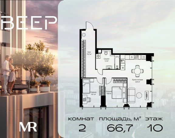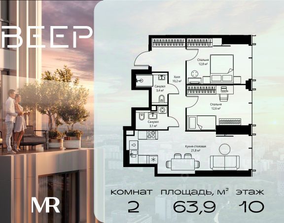 Прямая продажа от застройщика. В ЖК Сет продается 2-комнатная квартира площадью 64.80 м², расположенная в корпусе 2, на 10 этаже 59 этажного дома. Сет имеет стратегически выгодное расположение в ЗАО, в районе с большой историей и блестящим будущим: между природной зоной долины реки Сетунь и Кутузовским проспектом. В рамках возведения первой очереди предусмотрено три корпуса высотой 18, 45 и 59 этажей. На верхних этажах спроектированы общедоступные смотровые площадки с панорамным обзором на центр столицы. Преимущества проекта: • Функциональные планировочные решения • Контроль проникновения через входную дверь • Система управления освещением и температурой в квартире • Система защиты от протечек с функцией перекрытия воды • Вход в подъезд по биометрическим считывателям Face ID • Скоростные лифты • Двухуровневый подземный охраняемый паркинг на 495 машино-мест Застройка Сет включает в себя не только жилые корпуса, но и инфраструктурные объекты. Все необходимое для повседневного комфорта будет расположено в шаговой доступности: • Фитнес-Клуб с бассейном • Ведущая городская школа, детский сад и школа искусств • Центр культуры и досуга • Медицинский центр • Кафе и рестораны Расположение комплекса: Пешком: • Метро "Давыдково" - 17 минут • Парк "Долина реки Сетунь" - 3 минуты • Открытие новых станций метро в шаговой доступности в будущем Инфраструктура: Разнообразить свой день резиденты Веер смогут также проводя больше времени на свежем воздухе. Двор разделен на 4 зоны разных эмоций и действий, которые пересечены и соединены веерными прогулочными маршрутами: • Спортивная площадка устроена в глубине "Кленовой рощи" • В "Чайном домике" будет создан навес с утеплением для отдыха в любую погоду • Площадки для детей воплотятся в "Волшебный лес" с цветами, зеркалами и световым дизайном • "Центральная площадь" устроена у водного оазиса живописного пруда. На машине: • "Москва-Сити" - 15 минут • Садовое кольцо - 20 минут • ТЦ "Океания" - 8 минут • ТЦ "Времена года" - 13 минут • Сколково - 12 минут • Гребной канал - 17 минут Компания MR предлагает своим клиентам специальные условия приобретения квартир в рамках программ ипотечного кредитования от банков-партнеров.