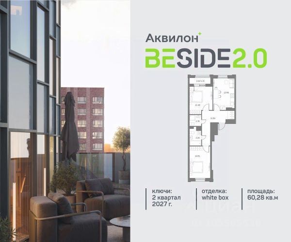 Продажа от застройщика. Продается 2-комнатная квартира на 10 этаже современного жилого комплекса Beside 2.0. Вид из окон: во двор и на улицу. Срок сдачи: 2 кв. 2027 г. Квартира с лоджией. Отделка WhiteBox: - Вам не придется заниматься черновыми работами. - Возможность реализовать любой дизайн-проект. Расположение: В Beside 2.0 все необходимое - в шаговой доступности, не нужно тратить много времени на дорогу до работы, школы и поликлиники, походы в магазины и кинотеатры. Квартал расположен на пересечении ключевых транспортных магистралей Москвы, что позволяет быстро и легко добраться до любой нужной локации. Выбирайте наиболее подходящее занятие или попробуйте все! - Спортивные центры - Ретейл на первых этажах - Событийная площадь с амфитеатром - Дворовые площадки для активностей Транспортная доступность: - 5 минут на машине до ТТК - 7 минут на машине до Садового кольца - 7 минут пешком до станции "Нижегородская Внутренняя инфраструктура Beside 2.0: - Своя школа на 825 учеников - Просторное и светлое гранд-лобби - Коворкинг на открытом воздухе - Детский клуб Akvilon Kids - Подземный паркинг - Колясочные и велосипедные - Сити-боксы для хранения - Профессиональная управляющая компания Преимущества: - Технология энергоэффективности Termo-S, снижающая теплопотерю домов и позволяющую экономить на электроснабжении - Soundstop - технология дополнительной шумоизоляции на 39 дБ в квартирах с WhiteBox и чистовой отделкой - Система умного дома inHome 3.0 позволит контролировать коммунальные расходы, оплачивать счета и пользоваться услугами, не выходя из умного дома - Vent-In - система циркуляции воздуха в каждой комнате