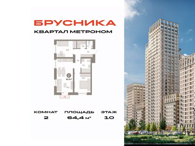 Продажа 2-комнатных квартир на 10 этаже станция Бульвар Рокоссовского (МЦК)