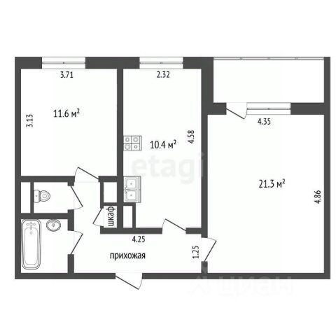 • ✅ Объект наибольшей площади: 54,9 м²