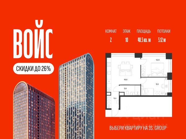 Ипотека от 3,5% на весь срок. Дополнительная скидка в офисе продаж! Продается уютная 2-комн. квартира площадью 50,4 кв.м на 10 этаже жилого комплекса бизнес-класса Войс. Общая площадь: 50,4 кв.м., жилая: 33,4 кв.м., площадь кухни-гостиной: 19,5 кв.м., высокие потолки: 3,12 м., санузел совмещенный. О проекте: Войс. Высокие стандарты жизни Мы уверены, что высокие идеалы неизменно помогают достигать высот. Создавая Войс, мы ориентировались на людей с высокими требованиями к качеству и безупречным вкусом. Башни жилого комплекса, сочетают элегантную форму с динамичной геометрией фасадов, устремляются ввысь и отвечают самым высоким стандартам строительства. Технологичность, воплощенная в архитектуре - это ваш, собственный Войс. Преимущества локации Близость к метро Текстильщики, БКЛ и МЦК Новохохловская (10 мин) Рядом природный заповедник и конно-спортивная база Кузьминки-Люблино Будущее окружение Проект Южный порт - Текстильщики с деловым центром Сити-2 Небоскребы высотой до 300м Культурный центр с амфитеатром Променад вдоль Москвы-реки и яхт-клуб Архитектура Проект от Архитектурной мастерской Алексея Ильина Две перпендикулярные башни с арочными вершинами Высокая башня: светло-серый металл Низкая башня: терракотовая керамика Благоустройство Внешняя зона: парковки, магазины, кафе Внутренний двор: закрытая территория с озеленением Шумозащитный экран Сезонное озеленение Встречи на высоте Гранд-лобби высотой 8м Дизайнерская мебель Умные скоростные лифты Услуги Детский центр с игровой зоной Фитнес-студия для жителей