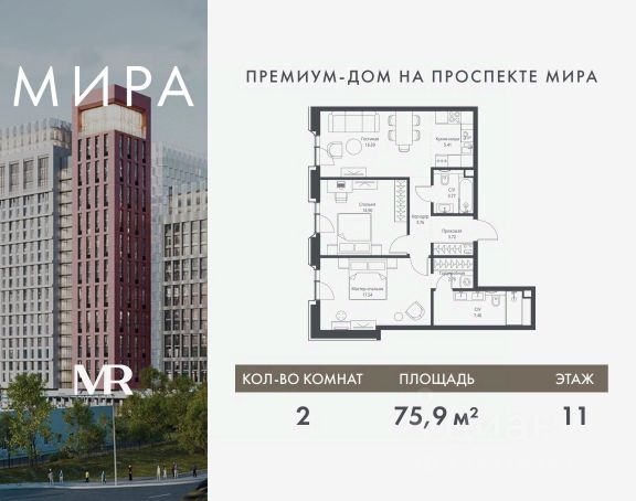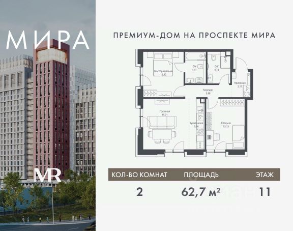Прямая продажа от застройщика. Продаётся 2-комнатная квартира общей площадью 56.81 м² без отделки в доме премиум-класса МИРА на 11-м этаже 24 этажного дома. Квартира расположена в корпусе 3. Дом премиум-класса МИРА это: • Спокойный район с богатой историей и сложившейся инфраструктурой • Авторская архитектура на стыке классики и современности • Вход в парк прямо из жилого комплекса • Панорамные виды на Яузу, парки, ВДНХ и скульптуру "Рабочий и колхозница" • Удобные сервисы и безопасность для каждого резидента Расположение: Жилой квартал расположен в Алексеевском районе на северо-востоке Москвы, на второй линии домов, таким образом вы сможете дистанцироваться от шума и суеты проспекта Мира, но при этом будете жить недалеко от этой важной городской магистрали. Прямо у дома: • Парк Акведук • Река Яуза • Памятник "Рабочий и колхозница" Пешком: • 16 мин м. ВДНХ На автомобиле: • 12 мин ТТК • 15 мин Садовое кольцо • 12 мин Национальный парк "Лосиный остров" Благоустройство: Концепция благоустройства от бюро "ДРУЖБА" разработана в стиле "Лесная тропа". В уютном дворе расположились словно затерянные в лесу, площадки для отдыха. Они разделяются островками с травами, кустарниками, крупными камнями и деревьями, между которыми проходят узкие песчаные тропинки с деликатной подсветкой по вечерам. Центральной точкой притяжения для жителей станет главная площадь с фонтаном, которая открывается сразу из двух входных групп. Внутренний двор МИРА: • Детская площадка с зонами для игр малышей до трех лет и детей более старшего возраста • Спортивная площадка с профессиональным оборудованием для тренировок • Декоративные перголы • Воздушный арт-объект с подсветкой, похожий на облако • Чайный домик, где в отдельном отапливаемом павильоне можно в любое время года попить кофе с соседями или устроить камерное семейное чаепитие • Зоны для работы и отдыха с гамаком под навесом, скамейками и креслами Инфраструктура и окружение: В Алексеевском районе есть огромные благоустроенные парки, магазины, гимназии с высоким рейтингом и филиалы ВУЗов, частные и государственные детские сады, модные кофейни и фитнес-центры. В квартале МИРА предусмотрены: • 2 ресторана с видом на парк Акведук • 3 кафе • фитнес-студия • подземный паркинг на 330 машино-мест Компания MR предлагает своим клиентам специальные условия приобретения квартир в рамках программ ипотечного кредитования от банков-партнеров.