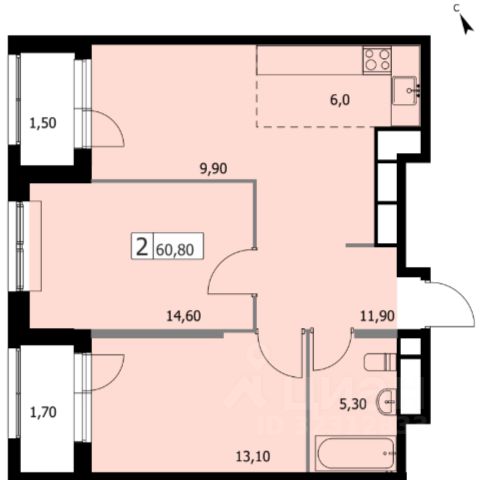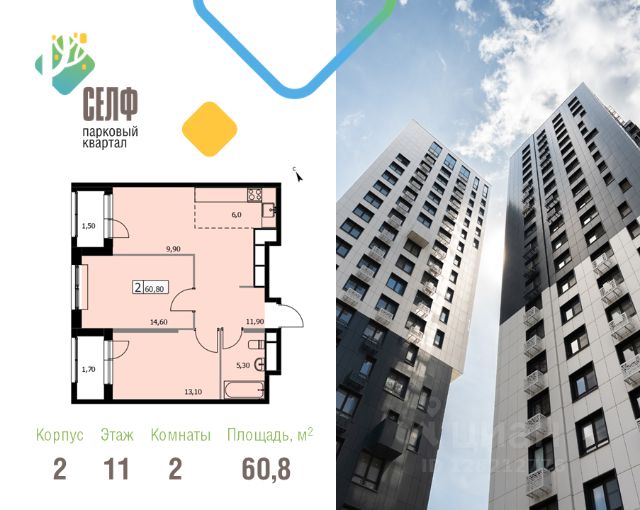 • ✅ Минимальная площадь: 60,8 м²