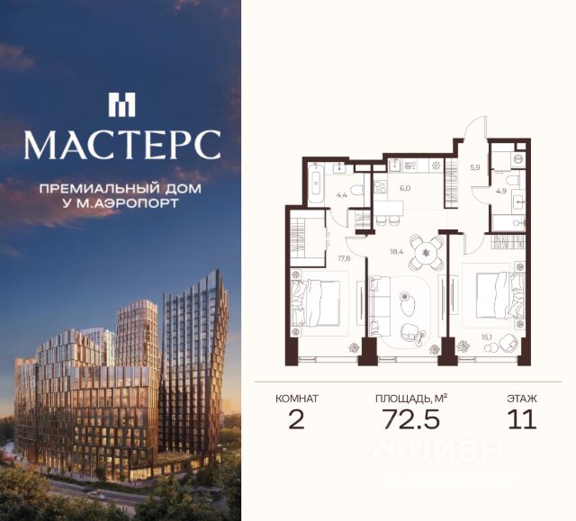 МАСТЕРС — премиальный дом в престижной северной части Москвы, всего в 15 минутах езды от Кремля. Непосредственная близость к метро "Аэропорт" обеспечивает превосходную транспортную доступность. Это идеальный баланс приватности, природы и динамики столицы. Приватный двор: атмосфера загородного отеля Приватный двор — продолжение жилого пространства с атмосферой роскошного загородного отеля. Натуральные материалы, всесезонный сад из более чем 600 деревьев и кустарников. Во дворе — авторская мебель индивидуального производства, пергола с водной чашей и развивающая детская площадка. Вечерняя ландшафтная подсветка создаёт неповторимый уют. Линейный парк: природа мастерства Современный парк гармонично сочетает природу и инфраструктуру. Здесь сохранены десятки взрослых деревьев. Для детей — игровые площадки и сенсорные тропы. Для взрослых — места для отдыха и спорта, коворкинг и амфитеатр, а также площадка для йоги и аптекарский огород. Квартиры: мастерство внутри Более 100 вариантов планировочных решений — для максимальной индивидуальности. Угловые форматы квартир и панорамное остекление наполняют пространство светом. Доступны квартиры с мастер-спальнями, террасами, гардеробными и ванными с окном. Лобби: форма вдохновения Двухсветное мастер-лобби площадью 160 м² впечатляет эффектным панорамным остеклением и дизайнерской парадной лестницей. Клубная гостиная трансформируется под разные форматы мероприятий. Для деловых встреч здесь предусмотрены коворкинг и акустическая кабина для звонков. Во всех лобби расположены лаундж-зоны, колясочные, зарядки для самокатов и лапомойки. Паркинг: мастерство в деталях* Двухуровневый паркинг на 363 места и индивидуальные кладовые площадью от 4 до 6 м² для хранения вещей. Инфраструктура для повседневного комфорта включает зарядные станции для электромобилей, мойку колёс и подкачку шин.