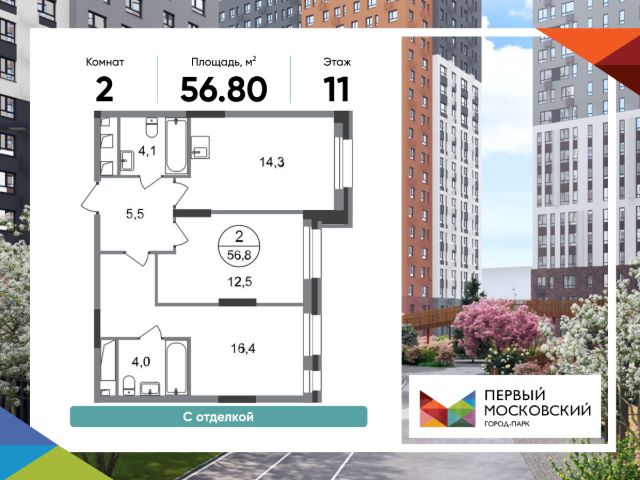 Продается двухкомнатная квартира с отделкой в 7 фазе города-парка "Первый Московский". Общая площадь квартиры - 54,8 кв. м, этаж 11 из 20. Срок сдачи - 1 квартал 2027 года. Тип дома - монолитный. Цена указана при 100% оплате. Новый корпус состоит из 3 секций: - 1 и 2 секции - с отделкой White Box с возможностью приобретения чистовой отделки за дополнительную плату - 3 секция - без отделки Город-парк "Первый Московский" расположен всего в 7 км по Киевскому шоссе (Новая Москва). Из города-парка прямой выезд на Киевское шоссе и трассу Солнцево-Бутово-Варшавское шоссе. ТРАНСПОРТНАЯ ДОСТУПНОСТЬ: - 5 мин. на личном автомобиле или 10 мин. на автобусе 189 и 147 до станции метро "Филатов Луг" - 25 мин. пешком до станции метро "Филатов Луг" ИНФРАСТРУКТУРА: Около 7 фазы запланировано строительство детского сада, школы, 2 многоуровневых паркингов. Также на территории проекта есть все необходимые объекты действующей социальной и бытовой инфраструктуры: 8 детских садов, 5 школ, ТЦ, магазины, паркинги, аптеки и др. БЛАГОУСТРОЙСТВО: - Дворы без машин - Игровые зоны для детей, зоны для занятия спортом, зоны для отдыха с навесами/качелями - Детские площадки разделены по возрастным группам - Пешеходный и веломаршрут с двухполосной велодорожкой 2,5 м в ширину - Озеленение с растениями всесезонного цветения ОСОБЕННОСТИ АРХИТЕКТУРЫ: В каждой секции 3 корпуса предусмотрены: - колясочные во входных группах - кладовые помещения с -1 по 20 этажи - коммерческие помещения на 1 этажах - по 4 лифта: 2 пассажирских, 2 грузовых - видеонаблюдение, установленное в холлах первых этажей, у подъездов и на прилегающей территории АВТОРСКИЙ ДИЗАЙН: Входные группы выполнены по авторскому дизайну, оснащены системой "тёплый пол". В каждой входной группе будет располагаться комфортабельная зона ожидания с мягким диваном, акцентными пуфами и столиком.