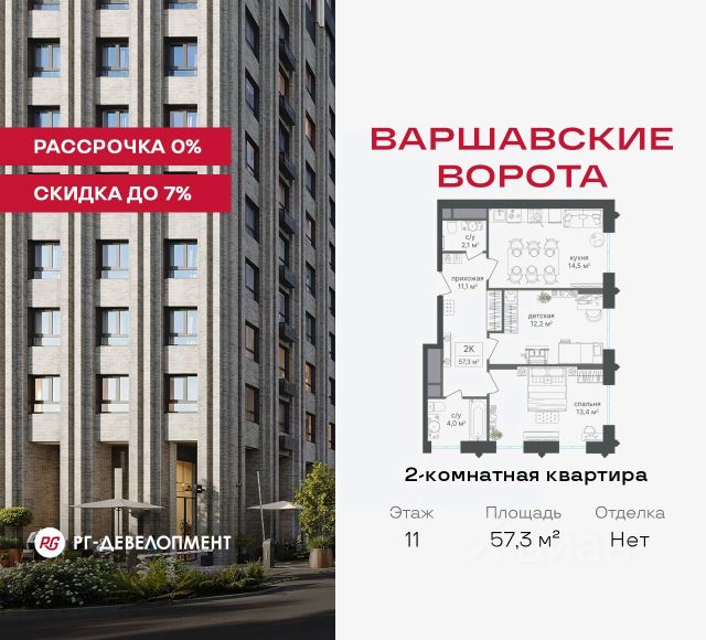 Рассрочка 0% + скидка 5%. Первый платёж 50% при ДДУ, второй 50% — через 12 мес. до ввода ЖК. Продаются 2-комнатные апартаменты 56,8 кв.м. в МФК "Варшавские ворота" на 11-м этаже 30 этажного дома. МФК "Варшавские ворота" — это проект, в котором учтен широкий спектр требований: от транспортной доступности и развитой инфраструктуры до архитектурной выразительности и экологического окружения. Апартаменты в МФК "Варшавские ворота" подойдут для тех, кто ищет продуманное жилье в Москве или готовый инвестиционный актив. Апартаменты здесь — это: - возможность жить комфортно в удобном городском формате — с природой, метро, сервисом и паркингом; - возможность купить лот с готовой отделкой, чтобы вложить минимальные инвестиции в ремонт и получить максимум возможностей от сдачи; - экономия на налоге на имущество, кадастровая стоимость апартаментов ниже ~ на 30% кадастровой стоимости квартиры; - высокая инвестиционная доходность объекта за счет более низкой цены покупки по сравнению с квартирой. Коротко о важном: - 1 минута пешком от м. Аннино; - Удобные выезды на Варшавское шоссе и МКАД; - Вид из окон на Битцевский лес и Аннинский лесопарк; - Высота потолков 2,7 - 3 м; - Закрытый двор-парк; - Школы и детские сады в 10-15 минутах пешком от дома; - Технические лоджии для размещения кондиционеров; - Подземный паркинг; - РГ-Девелопмент — ТОП-20 крупнейших застройщиков России. Проект сочетает в себе современную архитектуру и продуманное благоустройство с уникальным природным окружением. Всего в нескольких минутах от дома — девять парков, каскад прудов и крупнейшие лесопарковые зоны Москвы, создающие ощущение жизни в зеленом оазисе посреди мегаполиса. Архитектурная концепция - стиль Чикаго в Москве. Выполнена в минималистичной эстетике с использованием клинкера и декоративного кирпича. Фасады подчеркивают строгие линии и современный стиль, а входные группы разработаны московским бюро Syntaxis. Лобби оформлены с применением керамогранита, декоративной штукатурки и гипсовых панелей, детали из латуни добавляют изысканности. Пространство оживляют гербарии, композиции из сухоцветов и авторские панно. Проект находится в одной минуте пешком от метро "Аннино", в 12 минутах от станции "Улица Академика Янгеля" и рядом с МЦД-2 "Красный Строитель". Для автомобилистов предусмотрен прямой выезд на Варшавское шоссе и два съезда на МКАД, что позволяет быстро добираться в любую часть города. Среди планировочных решений представлены разнообразные форматы: от функциональных студий до просторных 4-комнатных квартир и апартаментов площадью от 22 до 105 м². Высокие потолки усиливают ощущение простора, а продуманные планировки включают мастер-спальни, гардеробные, угловые окна, объединённые кухни-гостиные и несколько санузлов. Центральное пространство комплекса — закрытый двор без машин. Он разделён на функциональные зоны: детские игровые комплексы, спортивные площадки, воркаут-зоны и уютные места для тихого отдыха. На первых этажах размес