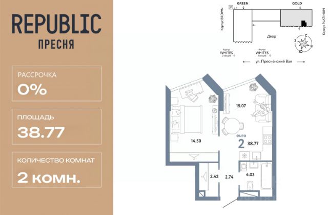 Новая квартира в ЖК "Republic" напрямую от федерального застройщика "Страна Девелопмент". Продается 2комнатная квартира на 11 этаже от застройщика Страна Девелопмент. Площадь квартиры 44,06 кв. м. Дизайн-квартал "Republic" — новый проект премиум-класса в Москве. 10 жилых башен и 4 восстановленных здания локомотивного депо образуют уникальное пространство. "Republic" — место, где вы ощутите гармонию истории и современности. Детский сад, SPA-комплекс с бассейном, гастрономический и шопинг-центры, собственный бульвар и яркие арт-пространства — для жителей предусмотрены все элементы премиального комфорта. Преимущества Уникальная жизненная среда, где инфраструктура включает гастрономию, SPA-комплекс с термами, образовательные и развлекательные заведения, арт-пространство и шопинг-аллеи. Двор от британского бюро "Gillespies": на 4 гектарах закрытого двора расположится 7 игровых зон для разных возрастов с ручьем и сухим фонтаном, арт-галерея под открытым небом и большой прогулочный бульвар. Лобби с террасой в башнях "Reds" — лаконичное пространство галереи-лобби, где можно проводить деловые и дружеские встречи, не нарушая приватности квартиры. В тёплое время года не остаётся пустующей терраса на крыше, которая привлекает непринуждённой атмосферой и прохладительными напитками в баре. Клубная гостиная — стильное пространство оборудовано кухней и залом для торжеств на 40 человек, а для того, чтобы побыть наедине с собой, почитать книгу или провести онлайн-встречу в гостиной оборудована мастерская с библиотекой. Уникальные форматы квартир, где можно реализовать любой жизненный сценарий: от стильного офиса в двухэтажной квартире до угловых лотов с просторными гостиными. А эксклюзивные пентхаусы с высокими потолками и панорамными окнами дарят захватывающие виды на Москву.. Отделка Квартиры сдаются без отделки или в формате White box. При отделке White box уже были выполнены все шумные и грязные работы руками наших специалистов: произведена разводка электричества с установкой подрозетников, установлены откосы из гипсокартона, устроена стяжка пола с шумоизоляцией. Способы покупки Сотрудники "Страна Девелопмент" будут сопровождать вас на каждом этапе сделки, помогут получить одобрение по ипотеке или снизить ежемесячный платеж. - ипотека - рассрочка - с использованием материнского капитала - 100% оплата наличными