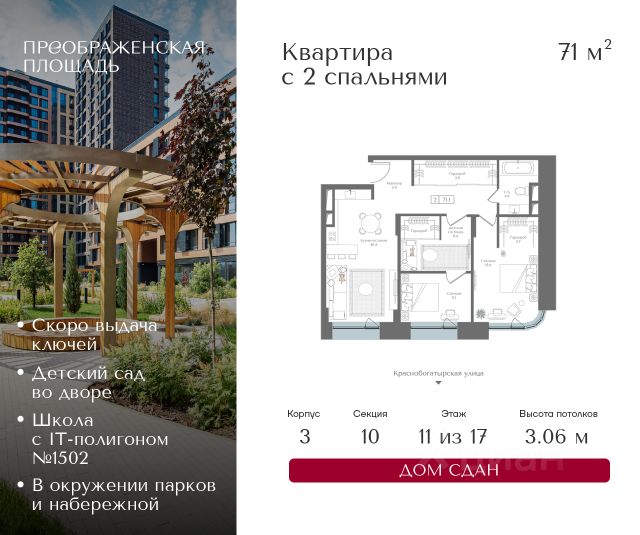 Предлагается квартира 88 (евродвушка) с кухней-гостиной и отдельной спальней, в доме комфорт-класса с уникальной архитектурой, расположенном в одном из самых атмосферных районов столицы — напротив Храма Рождества Христова (1678 г.). Это не просто жильё — это особая среда, созданная с участием самих будущих жителей.