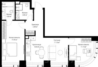 О квартире Продаётся двухкомнатная квартира общей площадью 55.41 кв. м. с отделкой на выбор: черновая, White Box. Квартира на 11 этаже корпуса 4.2 в жилом комплексе бизнес-класса "Среда на Кутузовском". До метро "Кунцевская" 10 минут пешком. Исторический зелёный район "Среда на Кутузовском" строится в Кунцево - историческом и экологически чистом районе Москвы. Здесь нет крупных производств, много лесных массивов и роза ветров, которая обеспечивает приток чистого воздуха. Район наполнен жизнью и уже развит: много детских садов и школ, поликлиники, магазины, кафе, спортивные объекты, парки. - 10 минут пешком до станции метро "Кунцевская". - 5-8 минут на машине до Кутузовского проспекта и Можайского шоссе и 10-15 минут до Рублёвского и МКАД. - 15 минут езды до Крылатских холмов, Суворовского парка и заказника "Долина реки Сетунь". Акции и спецпредложения - Выгода 12%: если внести 100% оплату или оформить семейную ипотеку под 6%. Действует до 13 апреля. - Низкие ставки по ипотеке: 0,1% в первый год или 0,11% в первые два года кредита. - Трейд-ин от "Среды": можно обменять свою текущую квартиру на новую. - Ипотека для семей с детьми: если ребёнку до 7 лет, предлагаем льготную ставку 3,5% О жилом комплексе "Среда на Кутузовском" - новый квартал с башнями от 12 до 44 этажей, окружённый лесными массивами и историческими усадьбами старой Москвы. Во внутреннем дворе есть водоём, многоуровневые зоны с детскими и спортивными площадками, коворкинг на свежем воздухе и локации для уединённого отдыха. Особенности - Архитектура с многослойными фасадами. - Квартиры с террасами и мастер-спальнями. - Окна в пол на всех этажах. - Общественные лаунж-гостиные. - Собственный ландшафтный парк во дворе. - Зоны барбекю и площадки для отдыха у воды. - Умный подземный паркинг. - Стрит-ритейл на первых этажах.