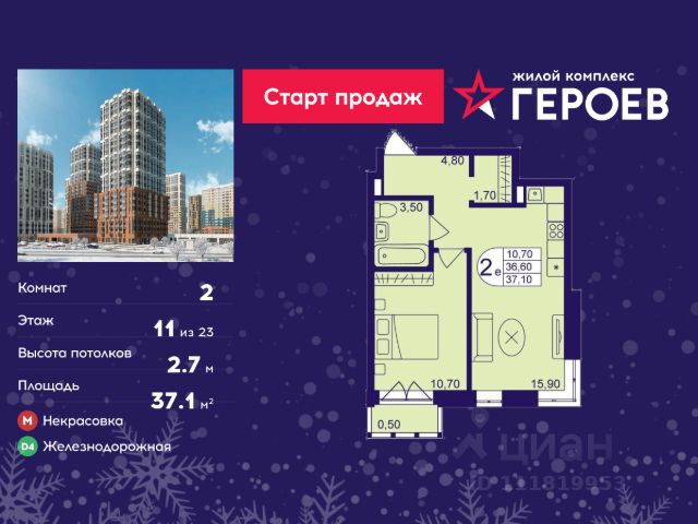 Продаётся 2-комнатная квартира в формате евро 39.50 кв. м. в жилом комплексе "Героев" в Балашихе, Железнодорожный. Квартира расположена на 11 этаже 411 корпуса. В наличии квартиры с отделкой. Всего 40 минут до центра Москвы. При покупке квартиры в сданном доме ключи выдаются сразу! Жилой квартал "Героев" - это уютный проект для семей с детьми. В квартале созданы все условия для досуга всех возрастов: игровые и спортивные площадки, места для отдыха и прогулочные зоны. За 15 минут можно дойти от дома до Ольгинского лесопарка, популярного места для отдыха на свежем воздухе. На территории жилого комплекса уже открыт детский сад на 250 мест и началось строительство еще одного - для 220 малышей, а также школы для 1320 учеников. Рядом работают магазины, кафе, супермаркеты, пункты выдачи. Преимущества: • В уютных светлых квартирах с просторными кухнями-гостиными удобно встречать гостей и проводить время наедине друг с другом. • Благодаря увеличенному остеклению в комнатах много света. • Квартиры продаются с отделкой, можно заселяться сразу после получения ключей.