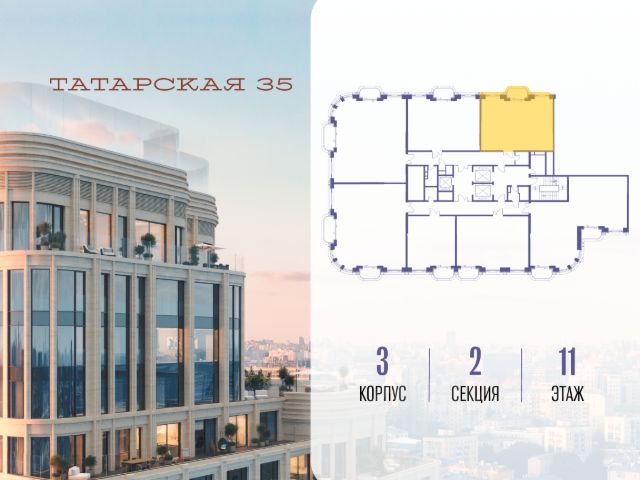 Продается просторная квартира площадью 119.10 м2 в жилом комплексе ТАТАРСКАЯ, 35. Квартира находится в 2 секции корпуса 3. Этаж 11-й из 23. Квартира без чистовой отделки, с просторной кухней 51.20 м2. Жилая площадь 18.10 м2. Высота потолка от 3.50. ТАТАРСКАЯ, 35 - новая архитектурная доминанта Замоскворечья, достопримечательность на фотопанорамах исторического центра Москвы. Элитный дом, созданный для тех, кто умеет смотреть далеко вперед, мыслить масштабно и воплощать собственный сценарий жизни. Вдохновляющие прогулки по променаду набережной, в уютных переулках, в парке "Зарядье", в Михайловском саду и Репинском сквере. Наслаждение высоким искусством в Третьяковской галерее, Доме Музыки, театральном музее им. А.А. Бахрушина, театре на Малой Ордынке. За окнами - Кремль, высотка на Котельнической, панорамы Замоскворечья и острова Балчуг, огни Садового кольца. Собственные спорт-румы, детская, репетиторская, бьюти-пространства, деловое пространство с коворкингом, переговорной и сигарной. Собственный трехуровневый фитнесс-центр с бассейном, тренажерным залом, сауной, хаммамом, массажным кабинетом. Площадь двора - 1,8 га, половина территории покрыта деревьями, кустарниками и лужайками. Дом расположен внутри Садового кольца - отсюда в считанные минуты можно добраться до важнейших мест столицы: достопримечательностей и парков, театров и ресторанов, деловых и административных центров. 7 минут до Кремля на автомобиле, 15 минут до Третьяковской галереи и 8 минут до Садового кольца пешком. Планировочные решения и визуализации предварительны, возможны изменения.