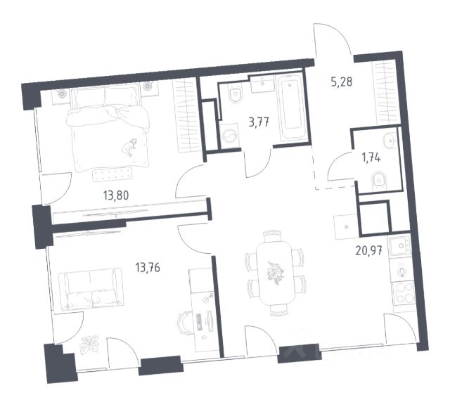Строим кварталы для жизни с заботой о будущем. Предлагается 2-комнатная квартира комфорт-класса площадью 60,86 кв.м в корпусе 2 на 11-м этаже, в жилом комплексе "Квартал Домашний". Застройщик сдает квартиры с отделкой в нескольких вариантах: предчистовая, готовая или вариант без нее. Последний подойдет тем, кто хочет создать свой уникальный интерьер и ничем себя не ограничивать. А если не хочется тратить время на ремонт, можно выбрать опцию — с отделкой. Перед тем как отдать ключи, застройщик установит натяжные потолки, поклеит обои под покраску, положит ламинат светлых тонов, а в санузлах — керамическую плитку и керамогранит. Приобрести квартиру возможно по специальным акциям от застройщика, с текущими условиями акций можно ознакомиться в блоке "Акций". Цена динамическая и может отличаться, уточняйте актуальность у застройщика. "Квартал Домашний" находится в Марьино — всего 7 минут пешком до МЦД-2 "Курьяново". Рядом с домом — набережная Москвы-реки. Внутренняя инфраструктура проекта продумана до мелочей: от супермаркетов до кафе и салонов красоты. В "Квартале Домашнем" можно выбирать свою высоту — в комплексе есть корпуса от 7 до 19 этажей. Среди планировочных решений — просторные кухни-гостиные, гардеробные, постирочные, лоджии и угловые окна. "Квартал Домашний" — это: 1. До станции МЦД-2 "Курьяново" — 7 минут пешком 2. До станции метро "Марьино" — 7 минут на машине 3. До парка 850-летия Москвы — 5 минут пешком 4. До парка "Борисовские пруды" — 15 минут на машине 5. До музея-заповедника "Царицыно" — 20 минут на авто 6. Музей-заповедник "Коломенское" — для фотосессий и прогулок 7. Европейская архитектура с фасадами природных оттенков: песочного, серого, зеленого, терракотового 8. Школа со стадионом, 2 детских сада — на территории квартала 9. Магазины, кафе и салоны красоты на первых этажах домов 10. Приватные дворы без машин 11. Подземный паркинг с местами для электрокаров и индивидуальные кладовые 12. Спортивные и игровые площадки 13. В планах построить школу со стадионом и 2 детских сада