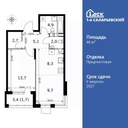 Продаётся 2-комн. квартира площадью 59,7 кв.м на 11 этаже 23 этажного дома (Корпус 69.1, Секция 1) проекта ПИК Саларьево парк. Светлый просторный подъезд на уровне земли, функциональная планировка, большие окна, предчистовая отделка. Жилой район "Саларьево парк" расположен в Новой Москве, в четырёх километрах от МКАД по Киевскому шоссе. Две станции метро: "Саларьево" и "Филатов луг", — находятся в пешей доступности от проекта. Дойти до них можно за 510 минут. В квартале уже создана качественная среда, где есть абсолютно всё для полноценной жизни, работы и отдыха. Благодаря удобному расположению проекта всё важное будет рядом: детские сады, школы, кафе и рестораны, шопинг в торговых центрах, фитнес и даже аэропорт. Все корпуса в квартале гармонично сочетаются, образуя единую городскую среду. Между собой их объединяет невысокая этажность и натуральная цветовая гамма. Здесь приятно гулять и проводить время на улице всей семьёй. В "Саларьево парке" создана уникальная образовательная среда, включающая в себя шесть школ, рассчитанных на 6 250 учеников. Две из них уже открыты, их посещает 2 300 детей. Также на территории "Саларьево парка" находится 12 детских садов, один из которых с бассейном. Сейчас уже открыты 7 садов. В "Саларьево парке" открыта уникальная игровая площадка — PlayHub "Оригами". Здесь есть ручей, горка-труба и рельефные холмы. Взрослые смогут отдохнуть в уютном кафе, пока дети играют. Также на территории проекта есть SportHub — большая спортивная зона, разделённая по интересам и возрастам. Здесь можно заниматься разными видами спорта: футболом, баскетболом, волейболом и стритболом. Зимой центральную часть площадки превращают в каток. Во дворах-парках жилого квартала есть места для отдыха, детские и спортивные площадки. На первых этажах домов расположены магазины, кафе и полезные сервисы. Также вблизи проекта есть несколько масштабных торговых центров. До ТЦ "Саларис" пять минут пешком, до "Рио", Metro Cash & Carry и "Леруа Мерлен" — пять минут на автомобиле. Артикул 1023294 (Застройщик ООО "Специализированный Застройщик "Тирон")