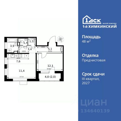 Прямая продажа от застройщика! Жилой Комплекс класса Комфорт. Продаётся 2-к квартира номер 609 общей площадью 55 кв.м. на 11-м этаже 17 этажного здания. Отделка Whitebox. Особенности квартиры: - Просторная спальня, в которой можно разместить большую кровать. - Распашная планировка - отличное сочетание удобства и свободы. - Раздельный санузел - больше удобства для всех членов семьи. - Гардеробная - удобство для хранения и организации вещей. - Тёплая лоджия - пространство для отдыха в любое время года. Квартира с предчистовой отделкой (White box). Вам не придется заниматься черновыми и трудоёмкими работы, а чистовую отделку и дизайн - сделайте на свой вкус. Информация о комплексе: Квартал класса комфорт плюс, где современное городское пространство граничит с удивительной природой вокруг. 1-й Химкинский расположен на территории в 102 га и органично вписан в природное окружение Химкинского леса и канала им. Москвы. В проекте предусмотрена богатая коммерческая инфраструктура с собственным торговым центром, общеобразовательные учреждения и социальные объекты. Изюминкой жилого комплекса будут спортивно-оздоровительный комплекс с термами и SPA и семейный парк развлечений. Транспортная доступность: ЖК "1-й Химкинский" дает возможность выбрать любой способ передвижения как до города, так и до самых разных объектов, которые могут представлять интерес для его жителей. Не важно, какой способ передвижения вы предпочитаете, успевать всегда и везде можно вне зависимости от выбора транспорта. - 8 мин. пешком (800 м) до остановки "Золотая Арка" -10 мин пешком (1 км) до остановки "Поворот на Ивакино" Внутренняя инфраструктура: - Безопасность: закрытые дворы без машин, безбарьерная среда и сквозные подъезды, камеры на детских площадках с возможностью трансляции на смартфоне - Идеальный отдых в кругу семьи: семейный парк развлечений на территории, торговый центр (2-х этажный) общей площадью более 8 тыс. кв. м с фудкортом - Образование: 3 детских сада и современная муниципальная школа на 2450 мест - Спортивная среда: закольцованный веломаршрут с навигацией, спортивный комплекс с термами, закрытый тренажерный зал и зоны ворк-аута - Социальные объекты: поликлиника со станцией скорой помощи, пожарное депо - Подземный паркинг и кладовые помещения на -1 этаже, станция техобслуживания и автомойка на территории