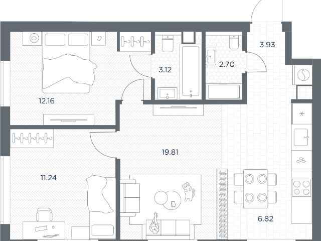 Продаётся 2-комнатная квартира 74.4 кв.м. в ЖК "Петровский парк II" на 2-м этаже 25 этажного дома.