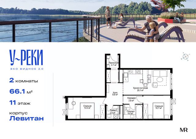 Прямая продажа от застройщика. Продаётся 2-комнатная квартира общей площадью 60.80 м² с предчистовой отделкой в ЖК "У реки. Эко Видное 2.0" на 11-м этаже корпуса Нестеров. Все корпуса введены в эксплуатацию. Выдача ключей - I кв. 2025г. Жилой комплекс "У реки" - уникальный проект комфорт-класса, в котором применяются стандарты строительства и сервиса MR, характерные для проектов девелопера бизнес и премиум-классов. 17-этажный корпус "Нестеров" расположится на живописном берегу реки Купелинка. Из его квартир откроются захватывающие виды на реку и лес на её противоположном берегу. О проекте: - 5 корпусов переменной этажности; - 8 км от МКАД, 30 минут до метро "Домодедовская", в 2025 года запланировано открытие станции МЦД-5 (дорога по Павелецкого вокзала займёт 30 минут); - Безопасные дворы с детскими и спортивными площадками для разных возрастов; - Собственная набережная с променадом, местами для пикников и рыбалки; - Два детских сада и школа на территории; - Развитая инфраструктура района; - Отделка MR Base (white box) Компания MR предлагает своим клиентам специальные условия приобретения квартир в рамках программ ипотечного кредитования от банков-партнеров.