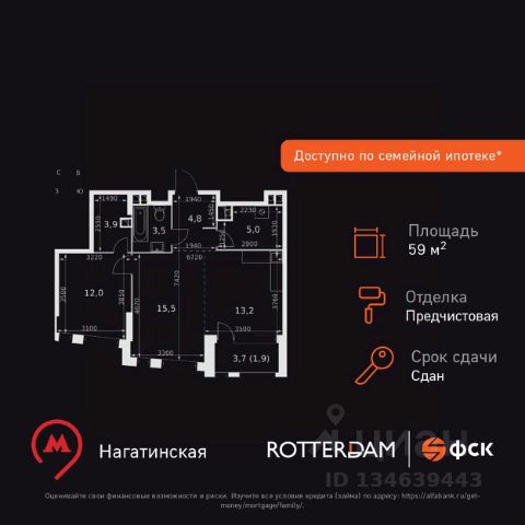 Прямая продажа от застройщика! Жилой Комплекс бизнес-класса. Продаётся 2-к квартира номер 463 общей площадью 59.8 кв.м. на 11-м этаже 29 этажного здания. Отделка Whitebox. Цена с учётом скидки. Особенности квартиры: - Мастер-зона с гардеробной. Просторное место для отдыха и удобного хранения вещей. - Линейная планировка - максимальная функциональность и удобство. - Линейная планировка - максимальная функциональность и удобство. - Увеличенное количество окон - дополнительное освещение и свежий воздух. - Постирочная - организуйте пространство для стирки и сушки вещей. - Евроформат - просторное и удобное жилье с отличной планировкой. - Гибкая планировка - создайте пространство по своему вкусу. - Место для игры/занятия спортом - идеальное пространство для активных детей. - Просторная мягкая зона - комфорт и уют для отдыха всей семьи. - Возможность добавить спальное место - дополнительный комфорт для гостей. - Проходная кухня-гостиная - идеальное пространство для общения и готовки. - Ниша под шкаф - компактное и удобное место для вещей. - Лоджия - уютное место для отдыха и тишины. Квартира с предчистовой отделкой (White box). Вам не придется заниматься черновыми и трудоёмкими работы, а чистовую отделку и дизайн - сделайте на свой вкус. Информация о комплексе: В ЖК Роттердам отличное расположение, которое позволит вам выбирать свой сегодняшняшний маршрут и транспорт исходя из настроения, целей и погоды. Отсюда удобно добираться в центр как на метро станция находится в пешей доступности, так и на автомобиле. Варшавское шоссе связывает жилой комплекс с ТТК, а через Люсиновскую и Мытную улицы с Садовым кольцом. В качестве альтернативного маршрута можно использовать Нагатинскую набережную: дорога вдоль Москва-реки приведет к Кремлю и Павелецкому вокзалу. Для неспешной поездки предусмотрены трамвайные маршруты, а в теплое время года веломаршруты вдоль реки. Транспортная доступность: Всего в 5 минутах пешком до метро Нагатинская и 8 минутах от МЦК Верхние Котлы. Рядом Аэроэкспресс до метро Домодево. До ТТК 2,2 км и 4,9 км до Садового кольца. Внутренняя инфраструктура: Если вы ищете идеальный баланс между отдыхом и работой и обладаете активной жизненной позицией - ЖК Роттердам вам понравится. В ЖК: зоны коворкинга, плейхаб и детские площадки для отдыха всей семьей. Близость к деловому центру Москвы, в окружении 5 парков, рядом спортивные и развлекательные центры Если вы любите живописные виды и долгие прогулки - ЖК Роттердам - отличный вариант для вас, так как он расположен прямо на Нагатинской набережной с выходом на Москву реку! В ЖК Роттердам соблюден баланс между высоткой и малоэтатажным зданием, которое не потеряло ощущение уюта и не создает впечатление городских джунглей Если вы любите быть на высоте и без ограничений - выбирайте верхние этажи Для тех, кто ценит комфорт и собственное время Для тех, кто ценит комфорт и личное пространство Для тех, кому важен комфорт, безопасность и личное пространство на пр