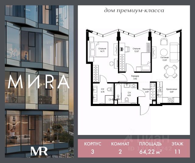 • ✓ В базе Циан 31 2-комнатных квартир на 11 этаже станция Ботанический сад (МЦК)