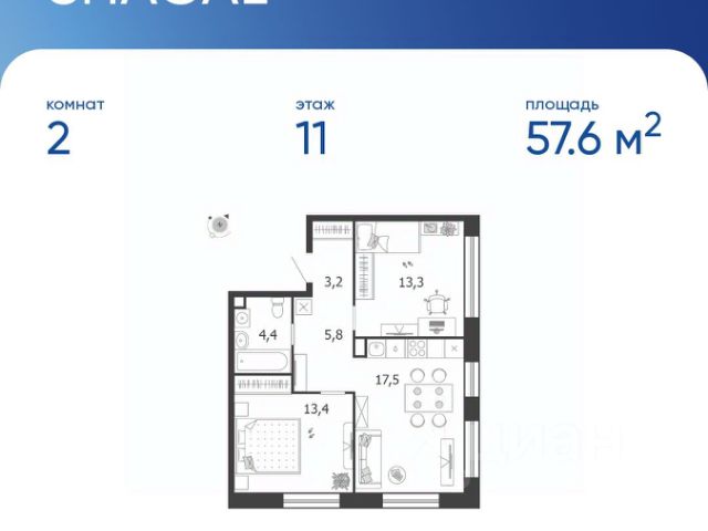 Продается квартира 729, по адресу г. Москва, ЮАО, Даниловский, ул. Автозаводская, вл. 23/75, корпус Жилой квартал Shagal, 3 очередь, 5 этап, корпус 9 в Shagal на 11 этаже, с площадью 57.6 м2.