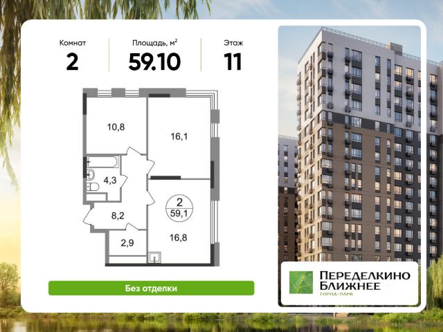 • ✓ В базе Циан 31 2-комнатных квартир на 11 этаже в поселении Внуковское в Москве