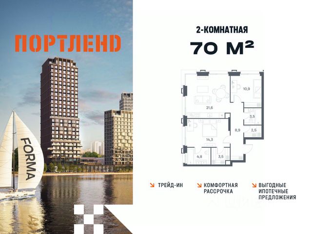 Скидка до 8% действует до 31.03.2026 г. при 100% оплате и не субсидированной ипотеке. Продается 2-комнатная квартира от застройщика: общая площадь 69.80 м², жилая 25.00 м², кухня 24.60 м², 11-й этаж, жилой квартал "Гордость", корпус 36 (секция 5). Срок сдачи: 2 квартал 2029 года. Позвоните сейчас и забронируйте квартиру! Квартал бизнес-класса СИМВОЛ - это городское пространство нового поколения в историческом районе Лефортово, на границе ЦАО, в 2 км от Садового кольца. Бионическая архитектура СИМВОЛА превратила Лефортово в суперсовременное и модное пространство. Из окон, с балконов и террас просторных квартир СИМВОЛА открываются отличные виды на город и новый парк "Зеленая река", "протекающий" через все кварталы комплекса на 2 км. В квартале уже есть все, что нужно для комфортной жизни: кафе и рестораны, супермаркеты и магазины, медицинские и физкультурно-оздоровительные центры, салоны красоты и барбершопы, аптеки и оптики, химчистки, пункты доставки и другие сервисы - всего более 90 действующих объектов внутриквартальной инфраструктуры. Для юных жителей СИМВОЛА открыты детский сад и инженерный лицей при МГТУ им. Баумана. Особенности квартала: • Свой парк "Зеленая Река" - 10 га зелени и развлечений на любой вкус! • Уникальная для Москвы архитектура - Проект создан архитектурной мастерской ATRIUM по дизайн-коду британских бюро LDA Design и UHA London. • Богатая инфраструктура с детскими садами и лицеем им. Баумана, кафе и ресторанами, супермаркетами и аптеками, зоной для фитнеса, бассейном и мед. центром. • Квартиры с панорамными окнами, террасами, ванными с окнами и каминами редких форматов. • Закрытые безопасные зелёные дворы-парки без машин!