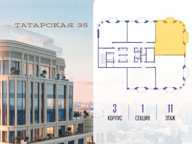 Продается просторная квартира площадью 119.10 м2 в жилом комплексе ТАТАРСКАЯ, 35. Квартира находится в 2 секции корпуса 3. Этаж 11-й из 23. Квартира без чистовой отделки, с просторной кухней 51.20 м2. Жилая площадь 18.10 м2. Высота потолка от 3.50. ТАТАРСКАЯ, 35 - новая архитектурная доминанта Замоскворечья, достопримечательность на фотопанорамах исторического центра Москвы. Элитный дом, созданный для тех, кто умеет смотреть далеко вперед, мыслить масштабно и воплощать собственный сценарий жизни. Вдохновляющие прогулки по променаду набережной, в уютных переулках, в парке "Зарядье", в Михайловском саду и Репинском сквере. Наслаждение высоким искусством в Третьяковской галерее, Доме Музыки, театральном музее им. А.А. Бахрушина, театре на Малой Ордынке. За окнами - Кремль, высотка на Котельнической, панорамы Замоскворечья и острова Балчуг, огни Садового кольца. Собственные спорт-румы, детская, репетиторская, бьюти-пространства, деловое пространство с коворкингом, переговорной и сигарной. Собственный трехуровневый фитнесс-центр с бассейном, тренажерным залом, сауной, хаммамом, массажным кабинетом. Площадь двора - 1,8 га, половина территории покрыта деревьями, кустарниками и лужайками. Дом расположен внутри Садового кольца - отсюда в считанные минуты можно добраться до важнейших мест столицы: достопримечательностей и парков, театров и ресторанов, деловых и административных центров. 7 минут до Кремля на автомобиле, 15 минут до Третьяковской галереи и 8 минут до Садового кольца пешком. Планировочные решения и визуализации предварительны, возможны изменения.
