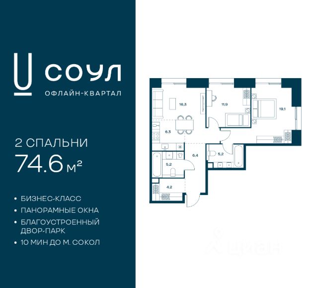 Цены указаны с условием 100% оплаты и стандартной ипотеки. Прямая продажа от застройщика! Продается 2-к. квартира номер 476 общей площадью 74.6 кв.м. на 12-м этаже 18 этажного дома, Корпус 8. Без отделки. Проект бизнес-класса СОУЛ от девелопера FORMA. До метро Сокол 10 мин пешком. Архитектура от британского бюро SimpsonHaugh. Благоустройство дворов — Gillespies и GAFA. Территория состоит из культурного парка и приватных дворов. Озеленение в эстетике лесного оазиса. Насыщенное благоустройство: прогулочные тропинки, релакс-зоны, пряный и сенсорный сады, развивающие детские площадки и воркауты. В центре проекта объект культурного наследия — общественное пространство Изофабрика, построенная в 30-х годах по проекту архитектора Георгия Гольца. Здесь будут располагаться мастерские для взрослых и детей, выставочные залы, коворкинги, образовательный центр, рестораны и кафе. Квартиры с панорамными окнами, мастер-спальнями, гардеробными, классическими балконами и лоджиями, видовыми террасами. Высота потолков от 2,9 до 3,5 м. В проекте 2 детских сада на 100 и 200 малышей. Клубная гостиная, фитнес-рум, детская игровая комната, дизайнерские лобби, подземный паркинг и келлеры.