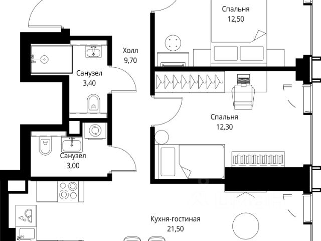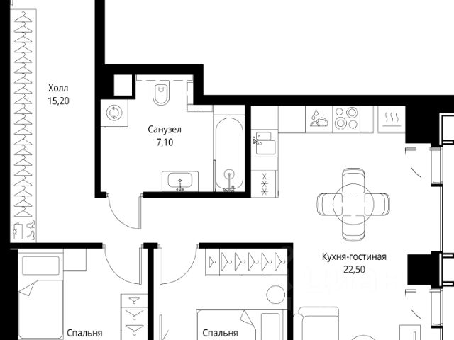 Прямая продажа от застройщика. Продаётся 2-комнатная квартира общей площадью 65.20 м² без отделки в ЖК VEER на 12-м этаже 59 этажного дома. Жилой комплекс бизнес-класса VEER от компании MR — это футуристичный мультиквартал, расположенный в престижной локации на западе Москвы. Благодаря переменной высоте башен — двух 22-этажных, 46-этажной и двух 59-этажных — возникает динамичность в силуэте комплекса, а его яркий образ вносит разноплановость в архитектурный пейзаж района. Расположение и транспортная доступность: • VEER удобно расположен в непосредственной близости от Кутузовского проспекта, обеспечивая быстрый доступ к центральным районам Москвы • Комплекс находится непосредственно напротив самого большого природного заказника в Москве - парка "Долина реки Сетунь", а за семь минут можно доехать до памятника садово-паркового искусства, Троекуровского леса. • Всего в 15 минутах - центр города, самая престижная бизнес-школа управления России "Сколково", дом творчества "Переделкино". • 18 минут пешком до м. "Давыдково" • Открытие новых станций метро в шаговой доступности в будущем Инфраструктура: Разнообразить свой день резиденты VEER смогут также проводя больше времени на свежем воздухе. Двор разделен на 4 зоны разных эмоций и действий, которые пересечены и соединены веерными прогулочными маршрутами: • Спортивная площадка устроена в глубине "Кленовой рощи" • В "Чайном домике" будет создан навес с утеплением для отдыха в любую погоду • Площадки для детей воплотятся в "Волшебный лес" с цветами, зеркалами и световым дизайном • "Центральная площадь" устроена у водного оазиса живописного пруда. Компания MR предлагает своим клиентам специальные условия приобретения квартир в рамках программ ипотечного кредитования от банков-партнеров.