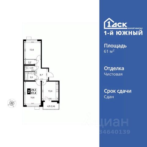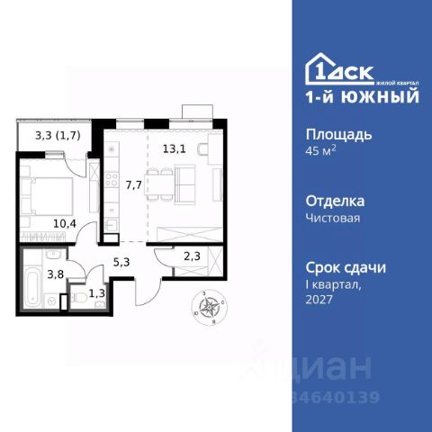 ДОПОЛНИТЕЛЬНАЯ СКИДКА ДО 10% В ОФИСЕ ПРОДАЖ! Прямая продажа от застройщика! Жилой Комплекс класса Комфорт Плюс. Продаётся 2-к квартира номер 178 общей площадью 45.6 кв.м. на 12-м этаже 24 этажного здания. Чистовая отделка. Особенности квартиры: - МЦД-5 в пешей доступности - Квартал с южным садом - Свои 3 детских сада и 2 большие школы - Линейная планировка - максимальная функциональность и удобство. - Раздельный санузел - больше удобства для всех членов семьи. - Евроформат - просторное и удобное жилье с отличной планировкой. - Линейная кухня - функциональность и практичность в одном решении. - Гардеробная - удобство для хранения и организации вещей. - Лоджия - уютное место для отдыха и тишины. Информация о комплексе: Одно из преимуществ проектов 1- ДСК большие застекленные лоджии. Другое преимущество честный евро-формат. Во всем проекте предусмотрена система Умный дом. В состав устанавливаемого пакета устройств входит: WiFi реле для управления группами потребителей, беспроводной кран перекрытия с эл. приводом, беспроводной сенсор протечки, Яндекс Станция Мини. Его расположение можно назвать удачным за счет транспортной доступности и близости к природным объектам. По соседству лес, а в каждом дворе плодовые деревья. Весной квартал окутывает бело-розовое облако: это цветут яблони, груши, сливы. К августу в воздух наполняется ароматом созревших плодов. Зимой среди покрытых инеем деревьев протянулась лыжня. Транспортная доступность: - Общественный транспорт: Действующая ж/д станция Булатниково (в перспективе будущая МДЦ D5) в пешей доступности, всего 10-12 минут. - Личный автотранспорт: Удобный выезд на трассу М4-Дон в сторону Москвы и области 850 м, до МКАД - 1 км Внутренняя инфраструктура: Красивые продуманные подъезды - еще одно преимущество проекта 1-й Южный. Вход в сквозные подъезды есть и с улицы, и со двора. Благодаря сплошному остеклению в них всегда светло и уютно. Подъезды расположены на уровне земли, поэтому и молодым родителям с коляской, и жильцам с ограниченными возможностями вход и выход неудобств не доставят. В помещении предусмотрено место под стойку ресепшен с выводом инженерных сетей. Если жильцы решат на общем собрании, что необходим охранник или консьерж, организовать для них рабочее место можно быстро и с минимальными затратами. В подъездах предусмотрены уборные для детей и взрослых. Колясочные в каждом подъезде позволяют поддерживать порядок и чистоту на этажах. На случай прогулки с четвероногим питомцем в непогоду в подъездах устроены лапомойки. Во дворах и на общественных территориях 1-ого Южного столько всего интересного для юных обитателей. Собственные 3 детских сада и 2 больших школы буквально под окнами Изюминка проекта - пешеходный бульвар-дендрарий, он идеален для семейных прогулок. По сторонам прогулочной зоны разместились точки для самых разнообразных активностей. Центральная площадь на бульваре предназначена для проведения всесезонных мероприятий, объединяющих жильцов.