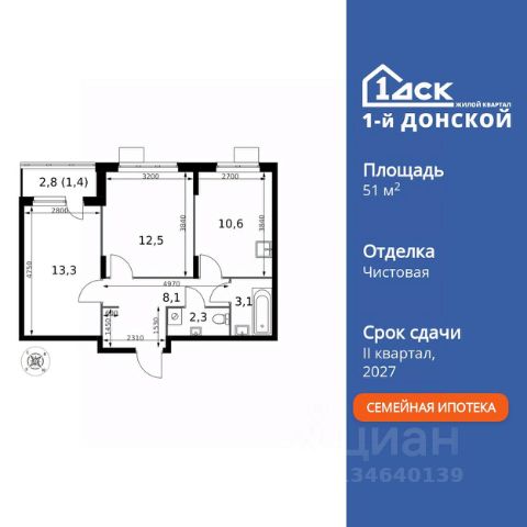 ДОПОЛНИТЕЛЬНАЯ СКИДКА ДО 10% В ОФИСЕ ПРОДАЖ! Прямая продажа от застройщика! Жилой Комплекс класса Комфорт Плюс. Продаётся 2-к квартира номер 380 общей площадью 51.3 кв.м. на 12-м этаже 24 этажного здания. Чистовая отделка. Особенности квартиры: - МЦД-5 в пешей доступности - Квартал с собственной набережной - Свои 2 детских сада и школа - Просторная спальня, в которой можно разместить большую кровать. - Линейная планировка - максимальная функциональность и удобство. - Раздельный санузел - больше удобства для всех членов семьи. - Ниша под шкаф - компактное и удобное место для вещей. - Лоджия - уютное место для отдыха и тишины. Информация о комплексе: Комплекс 1-й Донской расположен в 7 км от МКАД по трассе М-4 Дон. В нем сочетаются все плюсы комфортной городской среды и природного окружения. В проекте достаточно большой процент квартир, выходящих на 2-3 стороны света. Секции-маяки формируют у зданий визуальную L-форму, что придает застройке структуру и ритмику объемов. На ощущение динамики работает и разная этажность зданий. Теплая цветовая палитра фасадов отражает природу Дона. Вечерами дома преображаются благодаря архитектурной подсветке, выгодно выделяясь на городском фоне. Природа оказывает положительное влияние на человека на всех уровнях восприятия: через зрение, запахи, звуки, тактильные ощущения. Неподалеку от ЖК Первый Донской: Ермолинский парк, Видновский лесопарк, Жуковский парк Транспортная доступность: Комплекс удобно расположен в 7 км от МКАД по трассе М-4 Дон (через Видное). Расстояние до Каширского шоссе составляет 12 км. Добраться до метро и центра Москвы позволяет развитая сеть маршрутов общественного наземного транспорта. Действующая ж/д станция Калинина Павелецкого направления в 15-17 минутах ходьбы (МЦД-5 в 2025-2026 гг). Внутренняя инфраструктура: Проект 1-й Донской соседствует с бурно развивающимся районом, основная инфраструктура которого уже сложилась. В строительстве современных жилых комплексов в округе есть свои плюсы: здесь формируется продуманная и комфортная городская среда. Что касается внутренней инфраструктуры, на территории квартала будут расположены собственные муниципальные 2 детских садика и школа, которые помогут совместить приятное с полезным. Территория комплекса пронизана целой сетью живописных пешеходных маршрутов, позволяющих попасть в любой уголок района. Основные пути, как водится, "торговые". Они проходят вдоль магазинов, кафе и других представителей коммерции и отделяются от проезжей части зеленой "фито" - стеной. Среди крупных социальных объектов предусмотрены своя поликлиника и торговый центр с примыкающей площадью для общественных мероприятий. Уют начинается с продуманного подъезда. Сквозные подъезды наполнены светом благодаря сплошному остеклению. Вход в них есть и с улицы, и со двора.