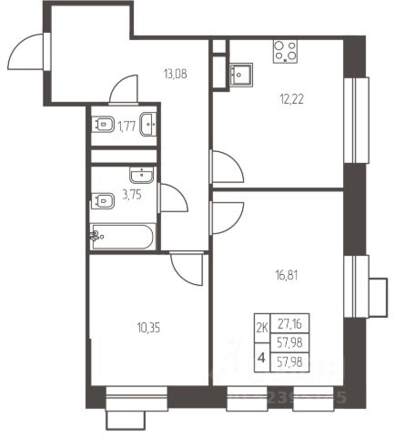 • ✓ В базе Циан 40 2-комнатных квартир на 12 этаже рядом с метро Гольяново