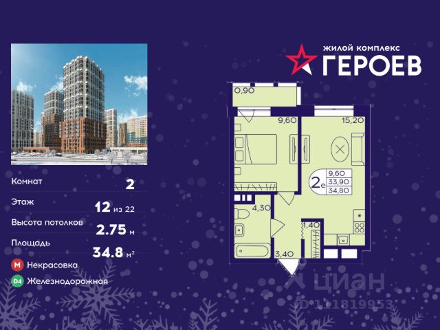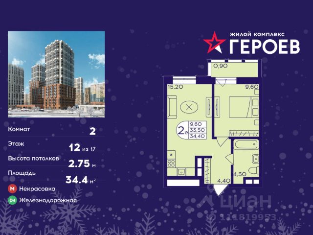 Продаётся 2-комнатная квартира в формате евро 34.40 кв. м. в жилом комплексе "Героев" в Балашихе, Железнодорожный. Квартира расположена на 12 этаже 410 корпуса. В наличии квартиры с отделкой. Всего 40 минут до центра Москвы. При покупке квартиры в сданном доме ключи выдаются сразу! Жилой квартал "Героев" - это уютный проект для семей с детьми. В квартале созданы все условия для досуга всех возрастов: игровые и спортивные площадки, места для отдыха и прогулочные зоны. За 15 минут можно дойти от дома до Ольгинского лесопарка, популярного места для отдыха на свежем воздухе. На территории жилого комплекса уже открыт детский сад на 250 мест и началось строительство еще одного - для 220 малышей, а также школы для 1320 учеников. Рядом работают магазины, кафе, супермаркеты, пункты выдачи. Преимущества: • В уютных светлых квартирах с просторными кухнями-гостиными удобно встречать гостей и проводить время наедине друг с другом. • Благодаря увеличенному остеклению в комнатах много света. • Квартиры продаются с отделкой, можно заселяться сразу после получения ключей.