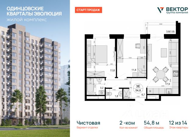 Продается 2-комн. кв-ра площадью 52,4 кв.м на 12 этаже 14 этажного дома в ЖК "Одинцовские кварталы Эволюция" от Группа компаний Вектор. Жилой комплекс "Одинцовские кварталы Эволюция" расположен в окружении живописного леса и исторических стародачных поселков, создавая атмосферу загородного уюта и культурной ценности. Этот район всегда считался престижным: здесь жили ученые, писатели и деятели искусства, что придает комплексу особый характер. ЖК находится всего в 14 километрах от МКАД по Минскому шоссе. Автомобилисты могут воспользоваться платной трассой "Северный обход Одинцово", чтобы добраться до Москвы примерно за 20 минут. Для тех, кто пользуется общественным транспортом, в 10 минутах пешком расположена ж/д станция МЦД-4 "Лесной городок", а в 250 метрах — остановка автобусов и маршруток, с помощью которых можно доехать до станции метро "Парк Победы" за 3540 минут. Внутренняя инфраструктура комплекса продумана для комфортной жизни. На территории есть детский сад, школа с бассейном, оздоровительный центр с футбольными, волейбольными и теннисными площадками, зоны отдыха с барбекю и мини-зоопарк. В шаговой доступности находятся торговые комплексы "Орешек", "Молодежный" и ТРД "Город", а на автобусе можно добраться до "Сколково" и крупных ТЦ с кинотеатрами, включая Vegas и "Крокус Сити Молл". Комплекс отличается небольшой этажностью — всего 4 этажа, что упрощает парковку. Входные группы оборудованы системой контроля доступа, работает КПП, обеспечивая безопасность жителей. Особенности квартир включают собственную артезианскую скважину глубиной 140 метров, обеспечивающую чистую питьевую воду из-под крана. Каждая квартира оснащена индивидуальным двухконтурным газовым котлом, что гарантирует постоянное горячее водоснабжение и помогает экономить на коммунальных услугах. Архитектура ЖК выполнена в европейском стиле с использованием экологичных материалов и декоративными элементами в стиле фахверк. Такое решение объединяет традиции стародачного Подмосковья и современный комфорт, создавая уютную и функциональную жилую среду.