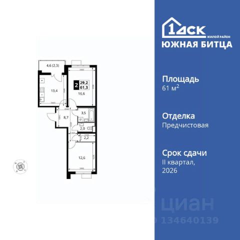 Прямая продажа от застройщика! Семейный жилой район класса Комфорт Плюс Продаётся 2-к квартира номер 76 общей площадью 61.3 кв.м. на 12-м этаже 22 этажного здания. Отделка Whitebox. Особенности квартиры: - Распашная планировка - отличное сочетание удобства и свободы. - Гостевой санузел - комфорт и удобство для ваших гостей. - Раздельный санузел - больше удобства для всех членов семьи. - Просторная кухня - место для семейных ужинов и кулинарных экспериментов. - Гардеробная - удобство для хранения и организации вещей. - Ниша под шкаф - компактное и удобное место для вещей. - Лоджия - уютное место для отдыха и тишины. Квартира с предчистовой отделкой (White box). Вам не придется заниматься черновыми и трудоёмкими работы, а чистовую отделку и дизайн - сделайте на свой вкус. Информация о комплексе: Сочетание свободного перемещения по внутреннней территории без машин и ощущения абсолютной безопасности благодаря надежным ограждениям - вот что отличает ЖК Южная Битца. На территории комплекса созданы все условия как для активного образа жизни, так и для спокойного времяпрепровождения. Свободно перемещайтесь по внутренней территории в безбарьерной среде! Продуманное зонирование во дворах позволяет отделить тихие зоны для родителей со спящими младенцами и тех, кто хочет почитать на свежем воздухе, от шумных игровых зон. Игровые зоны учитывают возраст детей. Площадки для детей старшего возраста вынесены за пределы дворов. Ощущение уютного дома должно начинаться с подъезда. Мы постарались предусмотреть все нюансы, чтобы наши лифты отвечали самым строгим современным требованиям. А наличие кладовых позволит вам поддерживать идеальный порядок и уют в вашей квартире! Транспортная доступность: В 3 км от МКАД в нескольких минутах езды до трех станций метро: Аннино, Бульвар Дмитрия Донского, улица Старокочаловская и станции МЦД2 - жд Бутово. Внутренняя инфраструктура: Для жителей жилого района "Южная Битца" доступна развитая инфраструктура близлежащих московских районов Чертаново, Южное, Бирюлёво Западное, Северное Бутово и Южное Бутово. Множество образовательных учреждений, объекты здравоохранения, торговые и развлекательные центры, кинотеатры, кафе, рестораны, парки.