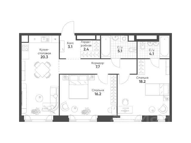 Продается 2-к квартира без отделки в ЖК "Mariinn Park". Общая площадь квартиры — 77.1 кв. м, этаж 12 из 16. Тип дома — монолитный. Цена указана при 100% оплате. Mariinn Park — камерный проект премиум-класса от Группы "Эталон" созданный для тех, кто ценит свое время и комфорт, а его расположение станет дополнительным приятным преимуществом. От бессонных транспортных артерий города он надежно защищен соседними кварталами, при этом имеет прямой выезд на ТТК и находится в 5 пеших минутах от станции метро "Марьина Роща". Здесь вы найдете долгожданное уединение и вместе с тем легко сможете войти в динамичный ритм городской жизни. Центр и все знаковые маршруты находятся рядом, а исторический район города предлагает богатую инфраструктуру. Визуальный облик дома выполнен в стиле модернизм. В качестве основного облицовочного материала используются крупноформатные керамогранитные панели с имитацией натурального белоснежного камня. Арочный стиль, используемый в фасадном решении дома, придает ему особую элегантность, характерную для классических и исторических зданий. Изящные арки обеспечивают фасадам легкость и динамику, а за счёт того, что этот приём используется на последних этажах и в стрит-ритейле первого этажа, создаётся ощущение парящего фасада. На внутридомовой территории реализовано благоустройство, тщательно продуманное для различных сценариев дня. Планировочные решения всех квартир разработаны таким образом, чтобы функциональность помещений дополняла комфорт проживания. В проекте представлен широкий выбор квартир различной комнатности и площадей. В Mariinn Park все направлено на удовлетворение высоких ожиданий его резидентов.