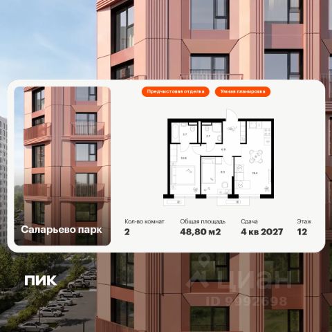 Продаётся 2-комн. квартира площадью 46,1 кв.м на 12 этаже 16 этажного дома (Корпус 57.4, Секция 4) проекта ПИК Саларьево парк. Светлый просторный подъезд на уровне земли, функциональная планировка, большие окна, предчистовая отделка. Жилой район "Саларьево парк" расположен в Новой Москве, в четырёх километрах от МКАД по Киевскому шоссе. Две станции метро: "Саларьево" и "Филатов луг", — находятся в пешей доступности от проекта. Дойти до них можно за 510 минут. В квартале уже создана качественная среда, где есть абсолютно всё для полноценной жизни, работы и отдыха. Благодаря удобному расположению проекта всё важное будет рядом: детские сады, школы, кафе и рестораны, шопинг в торговых центрах, фитнес и даже аэропорт. Все корпуса в квартале гармонично сочетаются, образуя единую городскую среду. Между собой их объединяет невысокая этажность и натуральная цветовая гамма. Здесь приятно гулять и проводить время на улице всей семьёй. В "Саларьево парке" создана уникальная образовательная среда, включающая в себя шесть школ, рассчитанных на 6 250 учеников. Две из них уже открыты, их посещает 2 300 детей. Также на территории "Саларьево парка" находится 12 детских садов, один из которых с бассейном. Сейчас уже открыты 7 садов. В "Саларьево парке" открыта уникальная игровая площадка — PlayHub "Оригами". Здесь есть ручей, горка-труба и рельефные холмы. Взрослые смогут отдохнуть в уютном кафе, пока дети играют. Также на территории проекта есть SportHub — большая спортивная зона, разделённая по интересам и возрастам. Здесь можно заниматься разными видами спорта: футболом, баскетболом, волейболом и стритболом. Зимой центральную часть площадки превращают в каток. Во дворах-парках жилого квартала есть места для отдыха, детские и спортивные площадки. На первых этажах домов расположены магазины, кафе и полезные сервисы. Также вблизи проекта есть несколько масштабных торговых центров. До ТЦ "Саларис" пять минут пешком, до "Рио", Metro Cash & Carry и "Леруа Мерлен" — пять минут на автомобиле. Артикул 1018645 (Застройщик ООО "Специализированный Застройщик "Тирон")