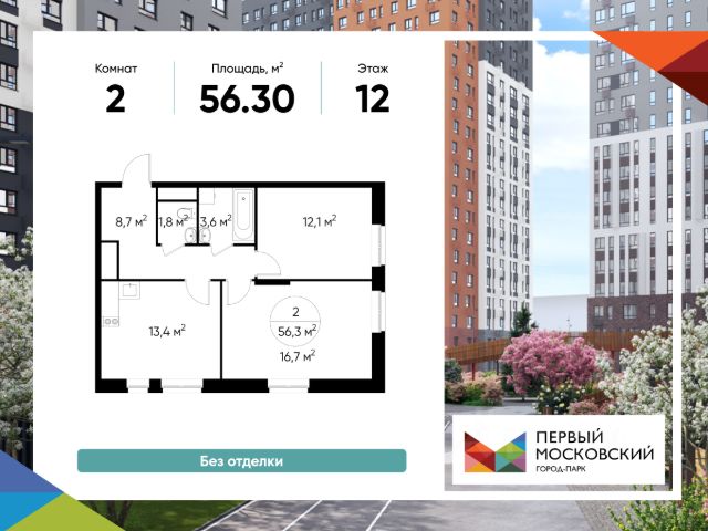 Продажа 2-комнатных квартир на 12 этаже рядом с метро Саларьево