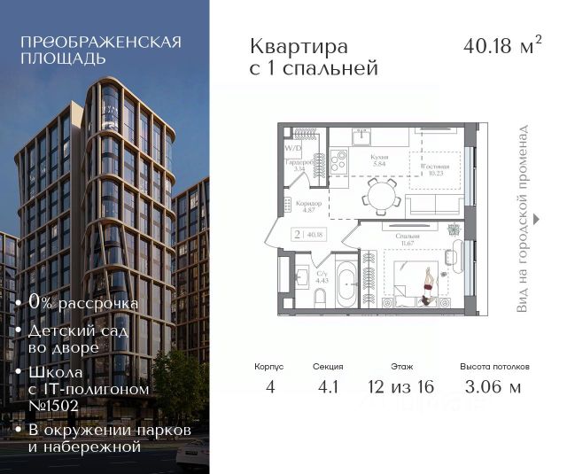 Рассрочка 0% от застройщика. Первоначальный взнос от 20%. Предложение действует до 31 декабря 2025 года Квартира на 12 этаже в жилом комплексе премиум-класса "Преображенская площадь". Общая площадь: 65.9 кв.м. Проект премиум-класса в историческом районе Москвы. До метро "Преображенская площадь" 3 минуты пешком. Квартиры сдаются без отделки и в свободной планировке, чтобы жители могли оформить пространство с учетом своей индивидуальности. Высота потолков от 3,15м, широкоформатное остекление, 3-5 квартир на этаже. Система Умный дом. Дизайнерские лобби. Внутренний двор 1,5 га функциональное и безопасное пространство для игр, работы и занятий спортом. Пешеходный променад для прогулок. Дома переменной этажности. Есть подземный паркинг. Жилой комлекс находится в окружении парков Сокольники, Черкизовский, Измайловский, заповедника Лосиный остров и ВДНХ, а также вблизи пешеходной набережной. Комфортная удаленность от центра: 7 минут на автомобиле до ТТК, 8 минут до Садового кольца, 25 минут до Кремля.
