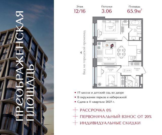 ARTEL два 12-этажных клубных дома по 82 квартиры в каждом. Квартира без отделки. Доступна опция дозаказа (2 варианта отделки на выбор). Особенности: Консьерж-сервис премиального уровня: ваших гостей встретят и проводят, помогут с бытовыми вопросами. Профессиональные службы клининга и охраны обеспечат полный порядок. На ухоженной, безопасной территории комплекса вы не увидите никого кроме соседей. Доступна опция валет-паркинга. Инфраструктура: 58 машиномест в подземном паркинге. Каждое — с зарядкой для электромобиля. Есть мотоместа. Предусмотрено хранение велосипедов и самокатов, колясочные и лапомойки. В приватном атриумном дворе сад с дорожками из натурального камня, воркаут-зона, места для отдыха и работы. Отдельная парковка для курьеров. Для курьеров будет отдельный вход, чтобы не пересекаться с остальными жильцами. Вокруг комплекса много зелени, низкая плотность и этажность окружающей застройки. Новых строек рядом не предвидится. В шаговой доступности: 10 детских садов и 8 школ, Преображенская набережная, кафе и рестораны, ТЦ, музеи, медицинская и спортивная инфраструктура. Сделка по договору долевого участия.