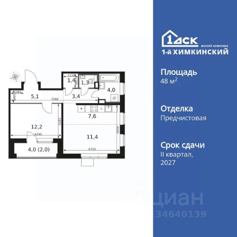 Прямая продажа от застройщика! Жилой Комплекс класса Комфорт. Продаётся 2-к квартира номер 152 общей площадью 46 кв.м. на 12-м этаже 17 этажного здания. Отделка Whitebox. Цена с учётом скидки. Особенности квартиры: - Угловая планировка - больше пространства для ваших идей. - Окно в ванной - натуральное освещение для уюта и комфорта. - Увеличенное количество окон - дополнительное освещение и свежий воздух. - Раздельный санузел - больше удобства для всех членов семьи. - Евроформат - просторное и удобное жилье с отличной планировкой. - Линейная кухня - функциональность и практичность в одном решении. - Гардеробная - удобство для хранения и организации вещей. - Ниша под шкаф - компактное и удобное место для вещей. - Лоджия - уютное место для отдыха и тишины. Квартира с предчистовой отделкой (White box). Вам не придется заниматься черновыми и трудоёмкими работы, а чистовую отделку и дизайн - сделайте на свой вкус. Информация о комплексе: Квартал класса комфорт плюс, где современное городское пространство граничит с удивительной природой вокруг. 1-й Химкинский расположен на территории в 102 га и органично вписан в природное окружение Химкинского леса и канала им. Москвы. В проекте предусмотрена богатая коммерческая инфраструктура с собственным торговым центром, общеобразовательные учреждения и социальные объекты. Изюминкой жилого комплекса будут спортивно-оздоровительный комплекс с термами и SPA и семейный парк развлечений. Транспортная доступность: ЖК "1-й Химкинский" дает возможность выбрать любой способ передвижения как до города, так и до самых разных объектов, которые могут представлять интерес для его жителей. Не важно, какой способ передвижения вы предпочитаете, успевать всегда и везде можно вне зависимости от выбора транспорта. - 8 мин. пешком (800 м) до остановки "Золотая Арка" -10 мин пешком (1 км) до остановки "Поворот на Ивакино" Внутренняя инфраструктура: - Безопасность: закрытые дворы без машин, безбарьерная среда и сквозные подъезды, камеры на детских площадках с возможностью трансляции на смартфоне - Идеальный отдых в кругу семьи: семейный парк развлечений на территории, торговый центр (2-х этажный) общей площадью более 8 тыс. кв. м с фудкортом - Образование: 3 детских сада и современная муниципальная школа на 2450 мест - Спортивная среда: закольцованный веломаршрут с навигацией, спортивный комплекс с термами, закрытый тренажерный зал и зоны ворк-аута - Социальные объекты: поликлиника со станцией скорой помощи, пожарное депо - Подземный паркинг и кладовые помещения на -1 этаже, станция техобслуживания и автомойка на территории