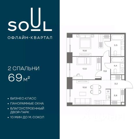 Цены указаны с условием 100% оплаты и стандартной ипотеки. Прямая продажа от застройщика! Продается 2-к. квартира номер 716 общей площадью 65.9 кв.м. на 12-м этаже 24 этажного дома, Корпус 9. С отделкой White Box Max. Проект бизнес-класса SOUL от девелопера FORMA. До метро Сокол 10 мин пешком. Архитектура от британского бюро SimpsonHaugh. Благоустройство дворов — Gillespies и GAFA. Территория состоит из культурного парка и приватных дворов. Озеленение в эстетике лесного оазиса. Насыщенное благоустройство: прогулочные тропинки, релакс-зоны, пряный и сенсорный сады, развивающие детские площадки и воркауты. В центре проекта объект культурного наследия — общественное пространство Изофабрика, построенная в 30-х годах по проекту архитектора Георгия Гольца. Здесь будут располагаться мастерские для взрослых и детей, выставочные залы, коворкинги, образовательный центр, рестораны и кафе. Квартиры с панорамными окнами, мастер-спальнями, гардеробными, классическими балконами и лоджиями, видовыми террасами. Высота потолков от 2,9 до 3,5 м. В проекте 2 детских сада на 100 и 200 малышей. Клубная гостиная, фитнес-рум, детская игровая комната, дизайнерские лобби, подземный паркинг и келлеры.