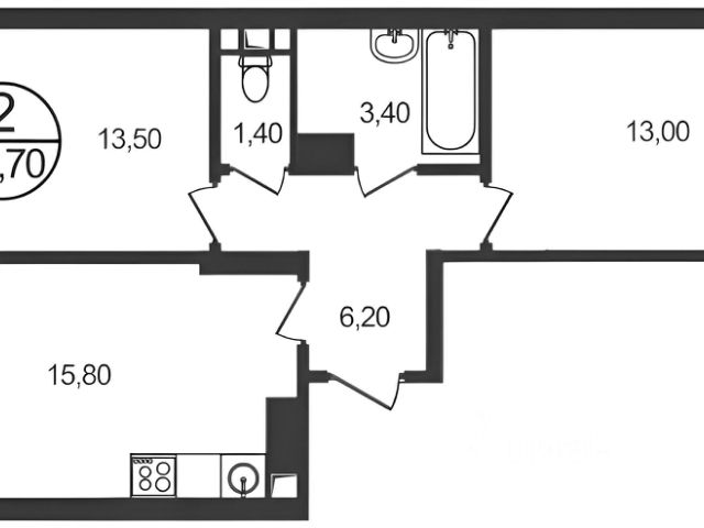 • ✓ В базе Циан 12 2-комнатных квартир на 12 этаже рядом с метро Улица Дмитриевского