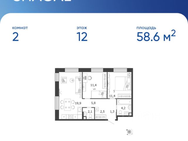 Продается квартира 266, по адресу г. Москва, ЮАО, Даниловский, ул. Автозаводская, вл. 23/75, корпус Жилой квартал Shagal, 3 очередь, 5 этап, корпус 5 в Shagal на 12 этаже, с площадью 58.6 м2.