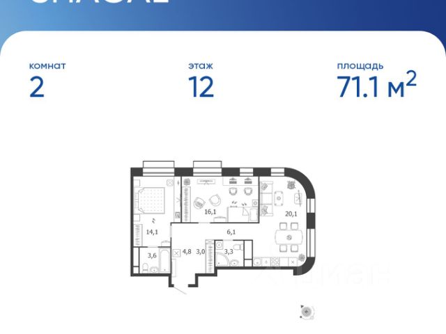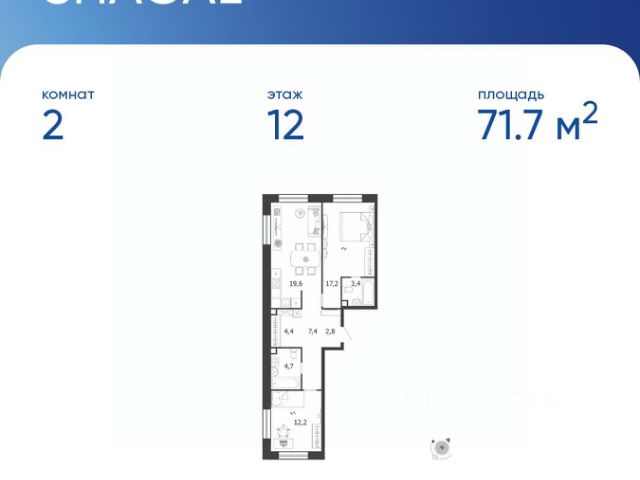 Продается квартира 156, по адресу г. Москва, ЮАО, Даниловский, ул. Автозаводская, вл. 23/75, корпус Жилой квартал Shagal, 3 очередь, 5 этап, корпус 5 в Shagal на 12 этаже, с площадью 71.7 м2.