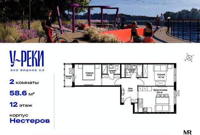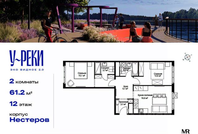 Прямая продажа от застройщика. Продаётся 2-комнатная квартира общей площадью 60.90 м² без отделки в ЖК "У реки. Эко Видное 2.0" на 12-м этаже 17 этажного корпуса Левитан. Все корпуса введены в эксплуатацию. Выдача ключей - II кв. 2025г. Семнадцатиэтажный корпус "Левитан" состоит из 13 секций, образующих в плане закрытый периметр двора. Эко-повестка и комфорт — это формат осознанной жизни, разработанный "Бюро А4" для благоустройства корпуса "Левитан". В проекте развиваются две темы: образ реки и настроения пейзажей Левитана которые раскрываются через четыре функциональные зоны. ЖК "У реки" — жилой микрорайон в Ленинском районе Подмосковья, в городе Видное. Архитектурные решения проекта разработаны бюро ADM, которое известно своими работами по созданию элитных объектов в столице. В проекте реализована продуманная европейская концепция благоустройства, включающая прогулочную набережную. О проекте: - 5 корпусов переменной этажности); - 8 км от МКАД, 30 минут до метро "Домодедовская", в 2025 года запланировано открытие станции МЦД-5 (дорога по Павелецкого вокзала займёт 30 минут); - Безопасные дворы с детскими и спортивными площадками для разных возрастов; - Собственная набережная с променадом, местами для пикников и рыбалки; - Два детских сада и школа на территории; - Развитая инфраструктура района; Компания MR предлагает своим клиентам специальные условия приобретения квартир в рамках программ ипотечного кредитования от банков-партнеров.