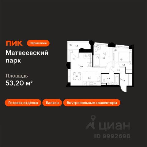 О квартире Продаётся 2-комнатная квартира общей площадью 51.1 кв.м. без отделки. Квартира расположена на 12 этаже корпуса 5.6 в жилом комплексе бизнес-класса "Среда на Лобачевского" в пешей доступности от метро "Аминьевская". О жилом комплексе "Среда на Лобачевского" полностью соответствует критериям современного жилого пространства. Взяв за основу рациональный подход, мы гармонично соединили дизайн, актуальные тренды и функциональность. Продуманный современный экстерьер и функциональные планировки внутри, приватные пространства и разнообразные досуговые зоны для каждого члена семьи — все это "Среда на Лобачевского". Инфраструктура Район отлично развит и наполнен жизнью, здесь уже есть вся необходимая инфраструктура — детские сады, школы, медучреждения, торговые центры, благоустроены парки для прогулок и отдыха, удобен и легкодоступен городской транспорт. Рядом расположены учебные корпуса крупных университетов — МГУ, МГИМО и РАНХиГС. Школы и детские сады в районе занимают высокие позиции в городских рейтингах, поэтому вам не придется беспокоиться о качестве образования детей. Как и об отдыхе: поблизости расположены живописные пруды, реки и парки. Это Парк Олимпийской деревни, Парк имени 50-летия Октября, Мещерский парк и Очаковские пруды. Теперь поставить галочки в еженедельном чек-листе "спорт-прогулки-встречи с друзьями" можно, не покидая любимый район. Особенности Особое внимание в проекте уделяется созданию функциональных пространств не только внутри дома, но и за его пределами. В ландшафтном парке "Среды на Лобачевского" расположены крытые зоны для спокойного времяпровождения, места для активного отдыха и спорта, коворкинг, соседский комьюнити-центр, водные объекты. —Ландшафтный парк во дворе. —Водный сад с зонами отдыха. —Зоны коворкинга. —Дизайнерские гранд-лобби. —Бесключевой доступ. —Подземный паркинг.